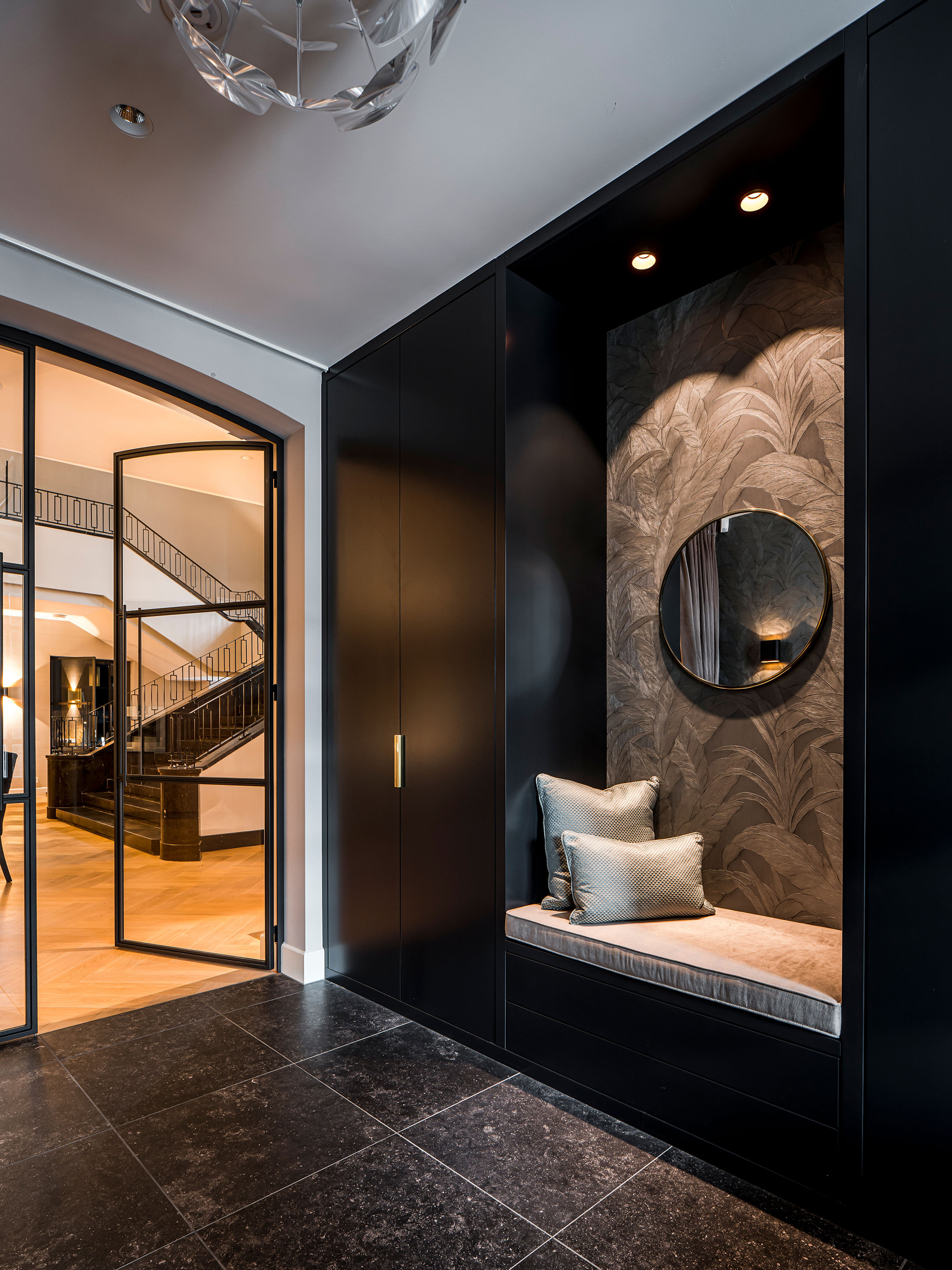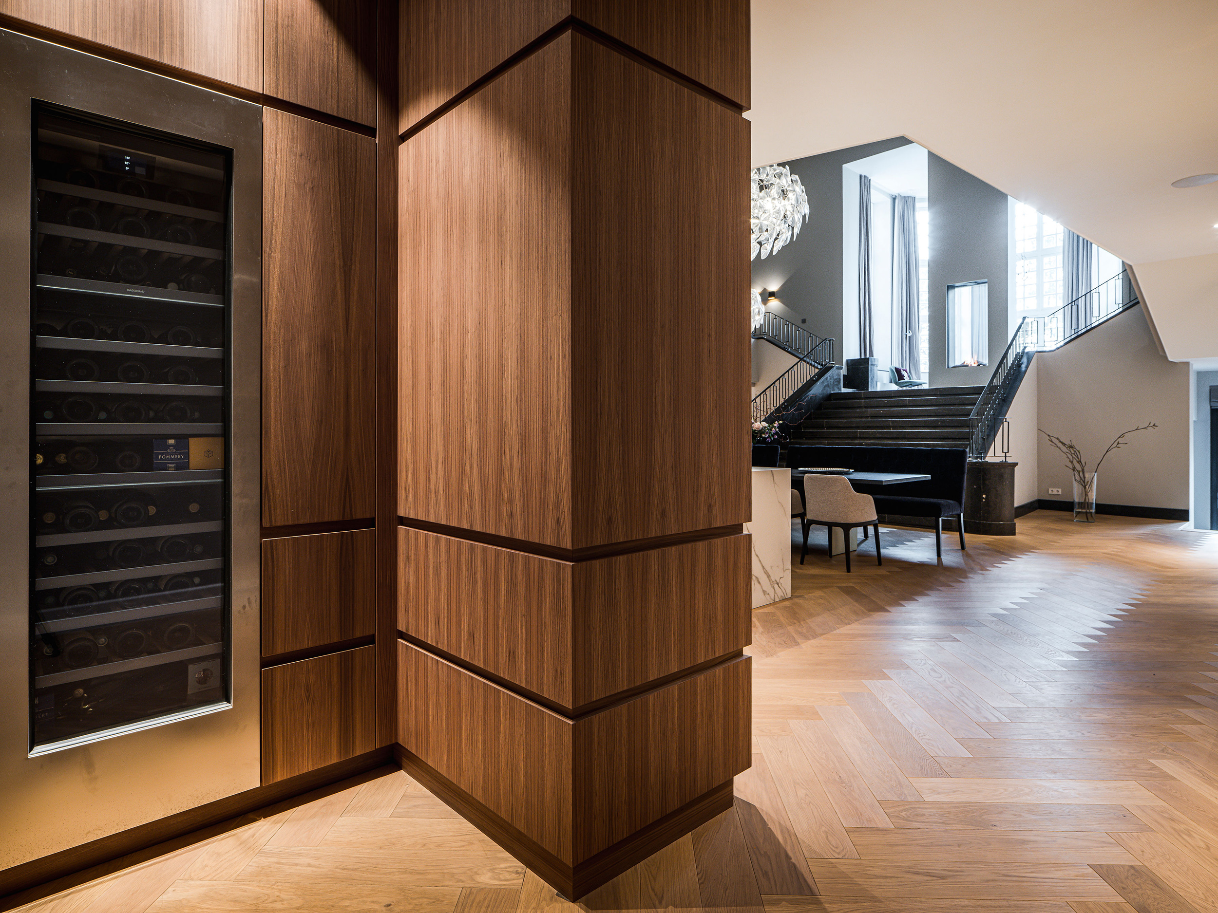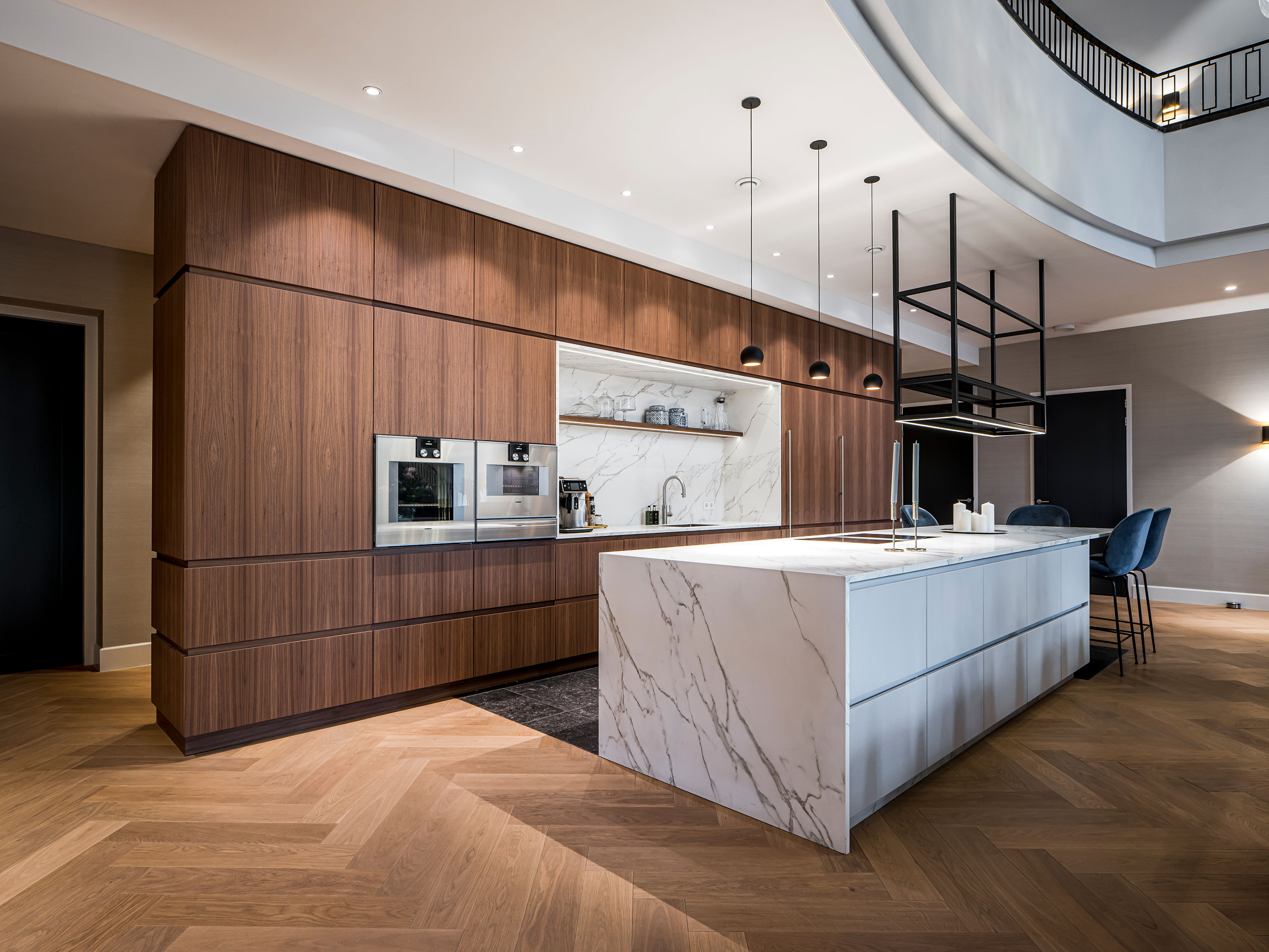 Once a military barracks, now a mansion. This one-of-a-kind monument in The Netherlands, designed by Stock Dutch Design and made with military precision by MATE, centers around the kitchen. A staircase rises straight from its heart, connecting floors in one sculptural move. An open fireplace welcomes you to the first floor and open lounge. And that’s just the start. All over the place we left our marks: cabinets disguised as architecture. from window seat storage to room-dividing units. It’s grand, it’s grounded. A monument, not a museum. Mission? Absolutely possible.