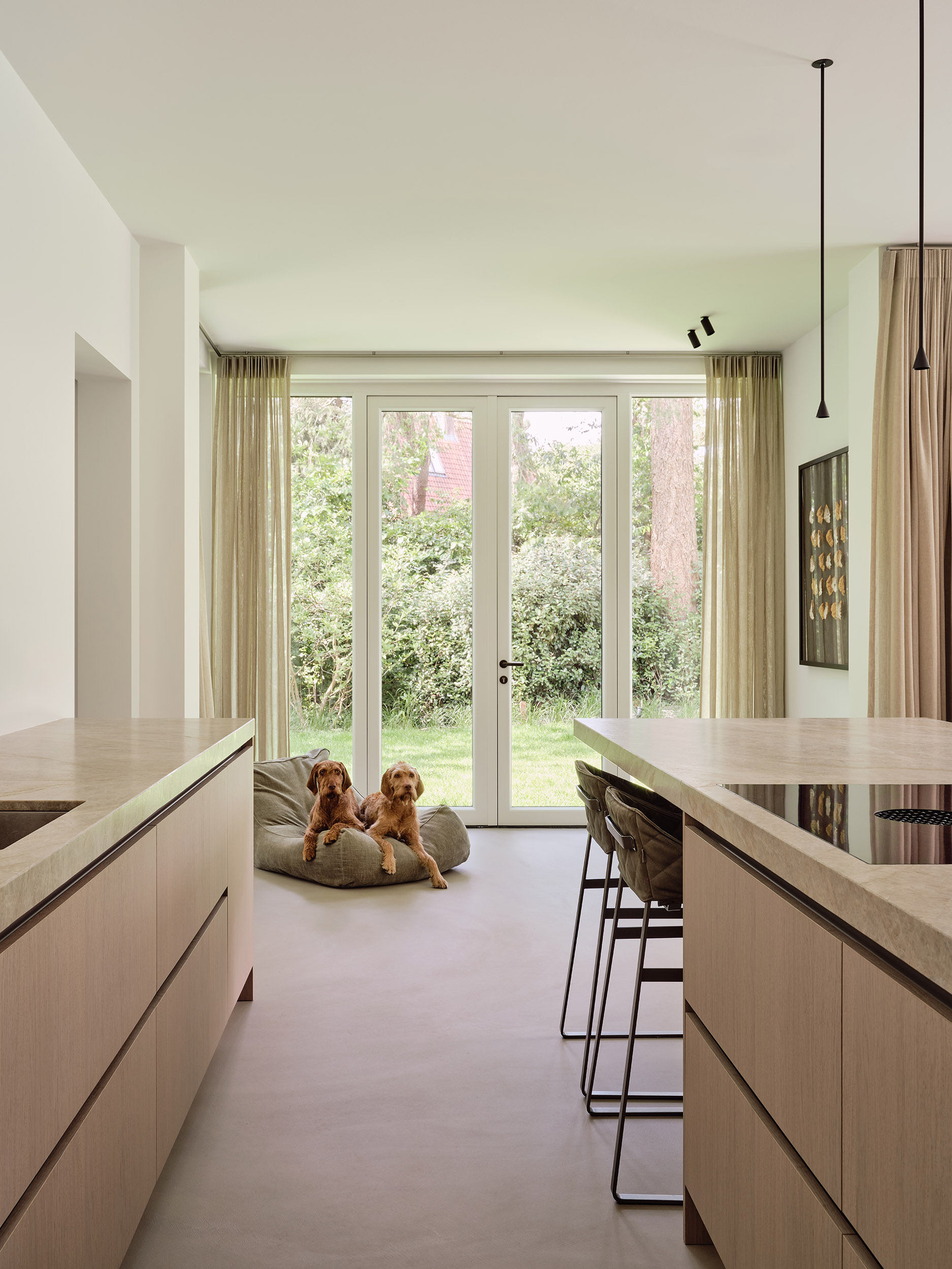 Je hebt nou eenmaal spullen. Tamelijk veel zelfs. Net als iedereen. Maar je wilt toch ook die natuurlijke, cleane en glam uitstraling. Dan komt ons vakwerk van de bovenste plank van pas. Voor deze 360 m² parel in Bosch en Duin maakten we keukens, kasten en een pantry die alle mogelijke chaos uit het zicht werkten en plaats maakten voor rust en stijl. Hoe heerlijk om Derkina’s design dromen waar te maken. *Bijpassende honden zijn helaas niet inbegrepen.