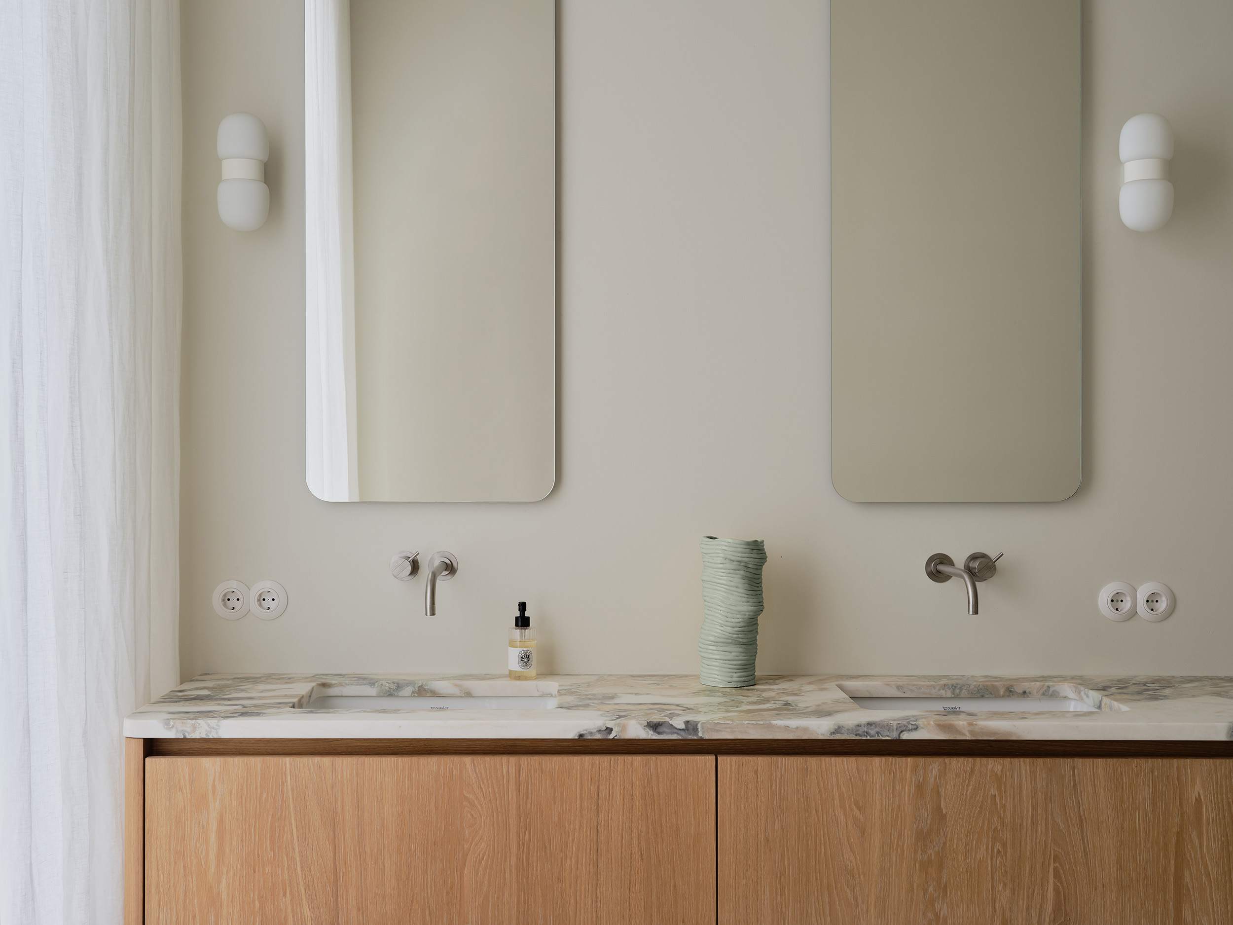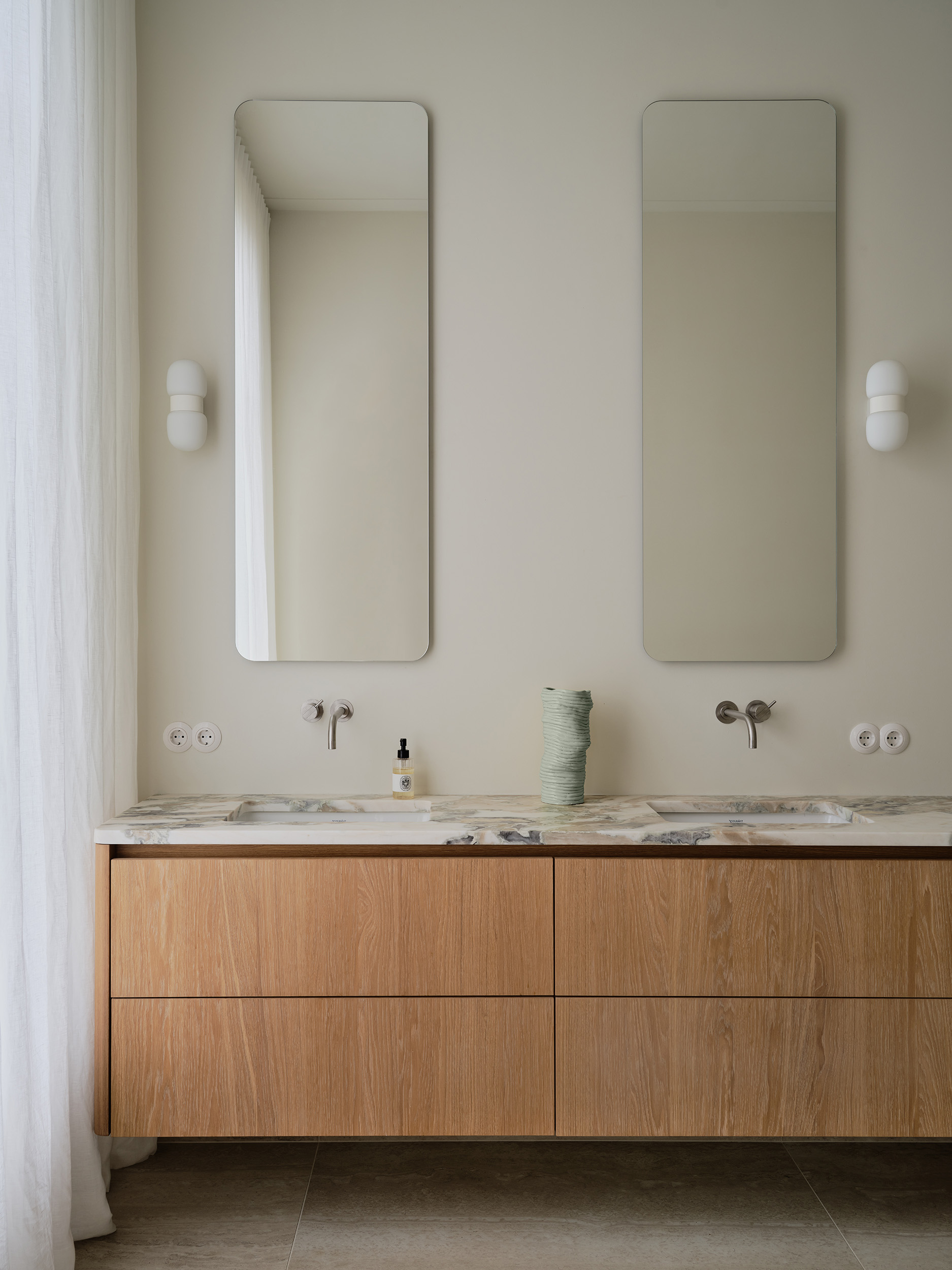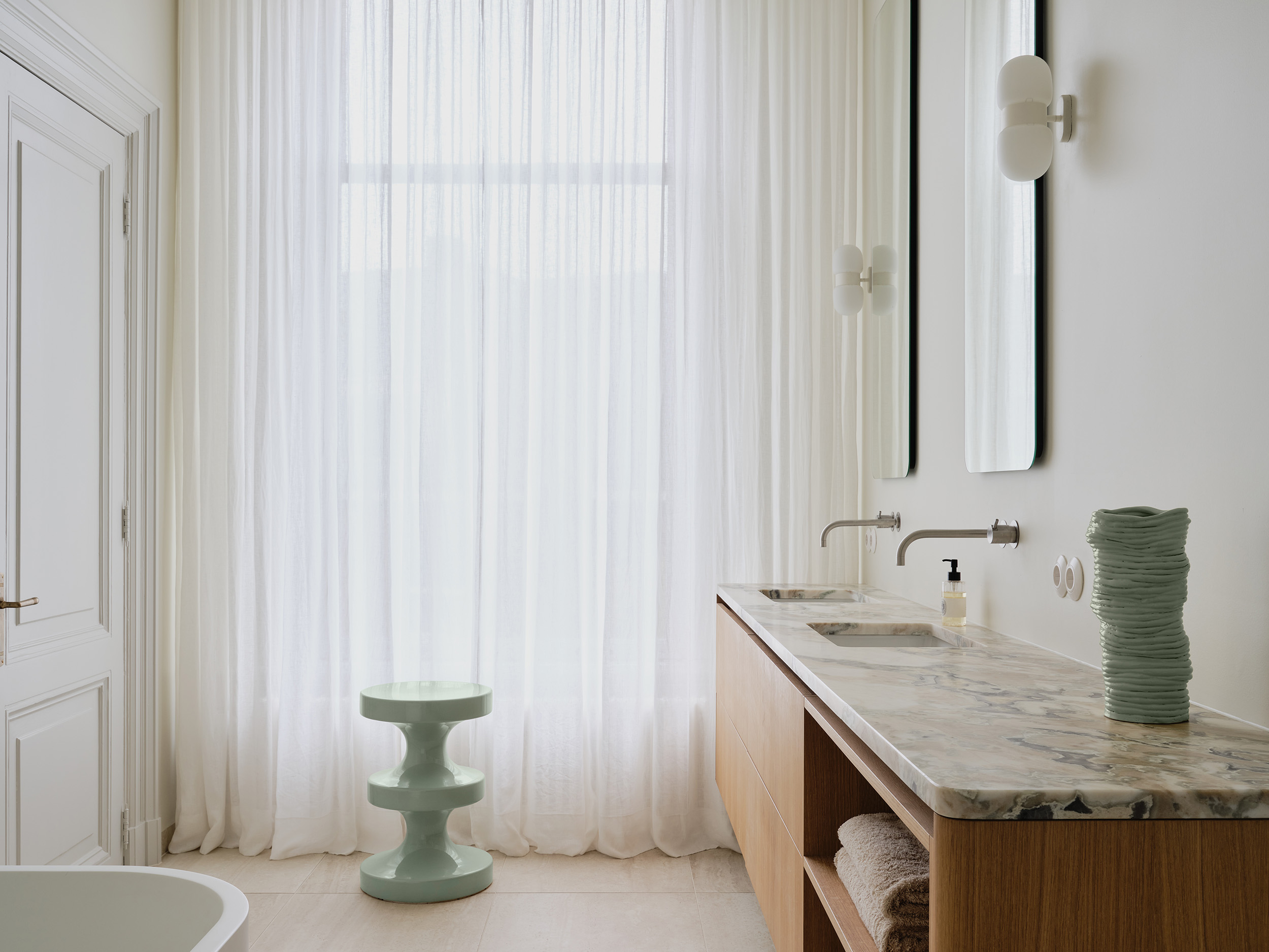 Zachte tinten, vrije vormen en een kleurverhaal dat door alle ruimtes stroomt. Deze serene woning in Amsterdam, vormgegeven door Sascha Faase Interior Design, draait om stille klasse en zorgvuldig maatwerk. Van nachtkastje tot badkamer tot ingebouwd bureau: de toon is gezet. Als de basis klopt, valt alles op zijn plaats. Inclusief het vakwerk.