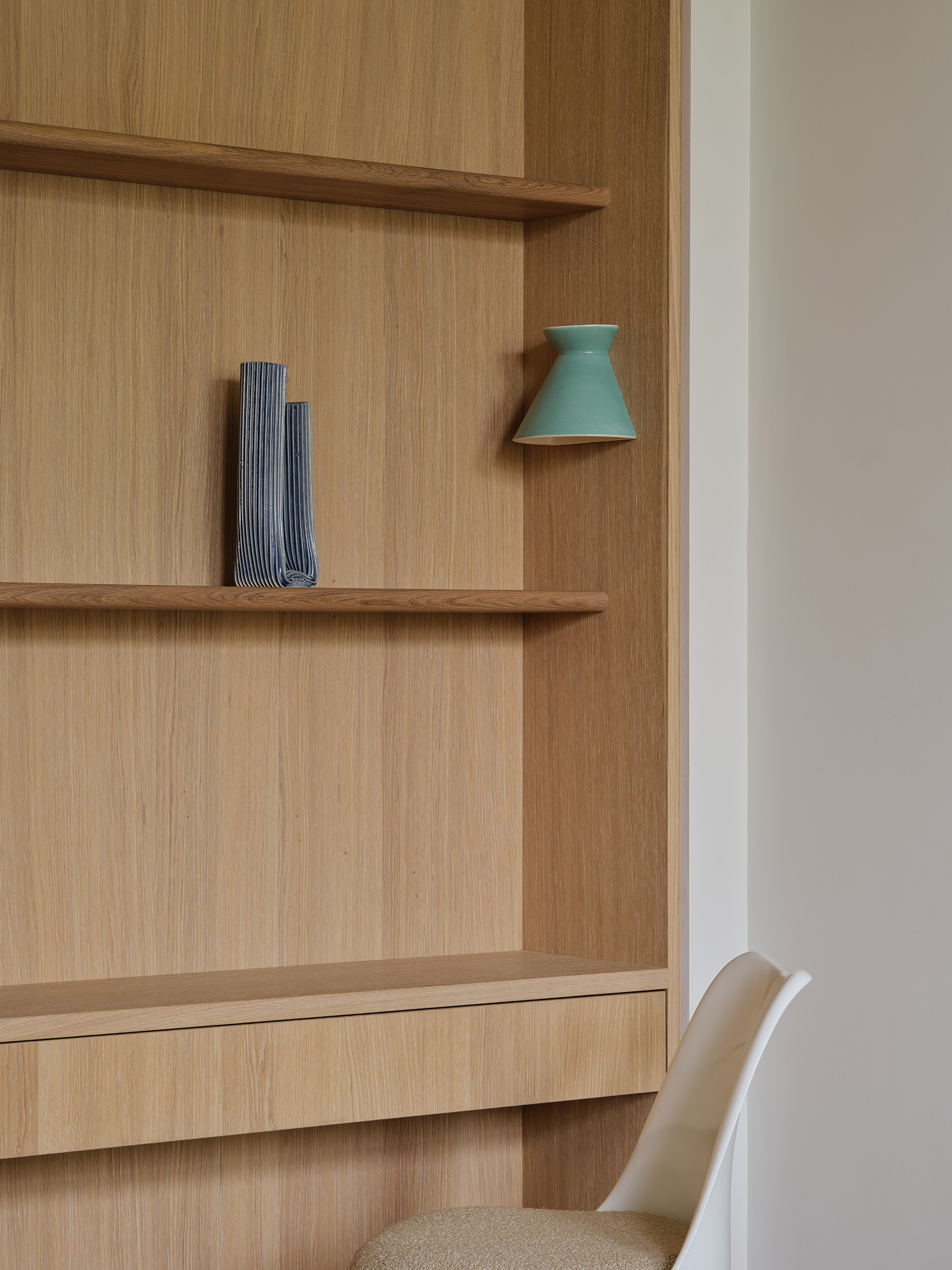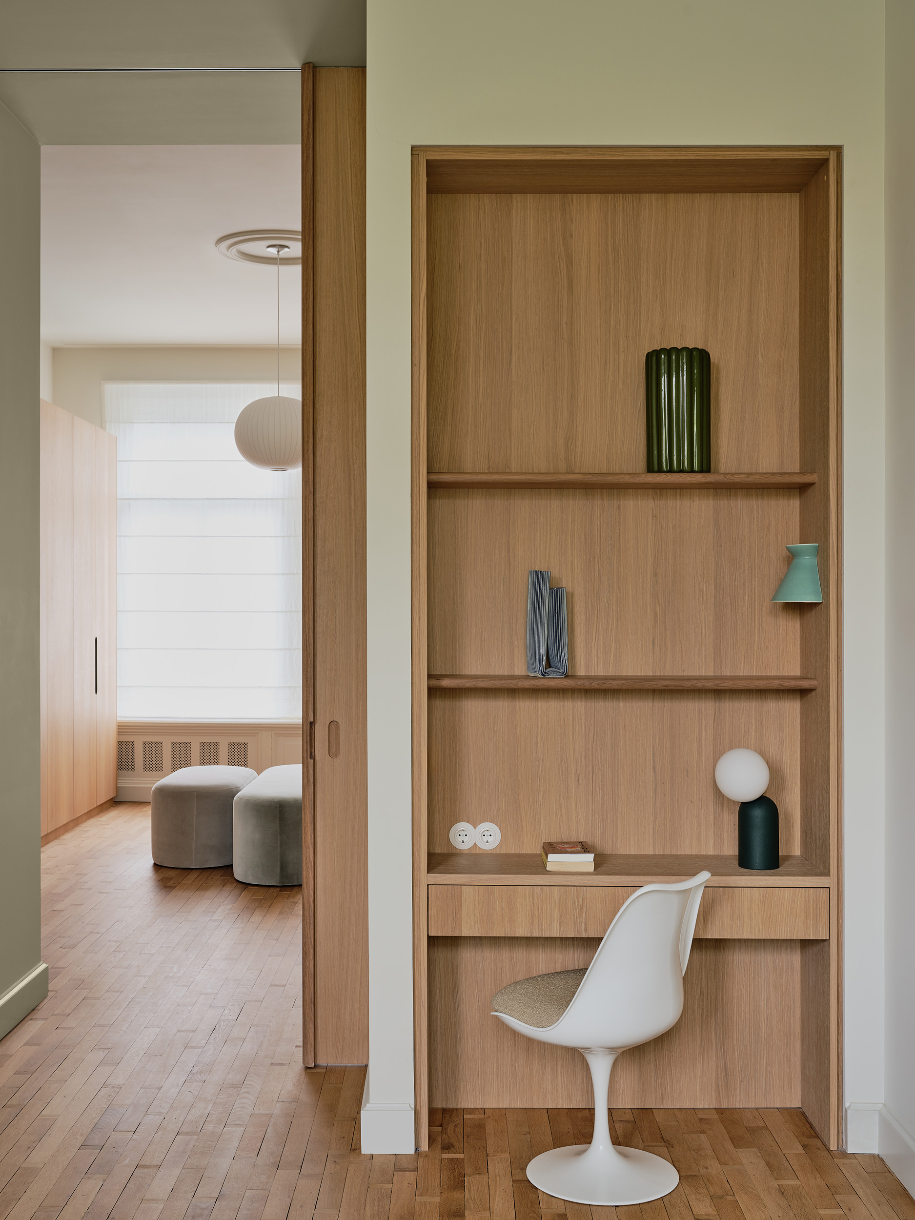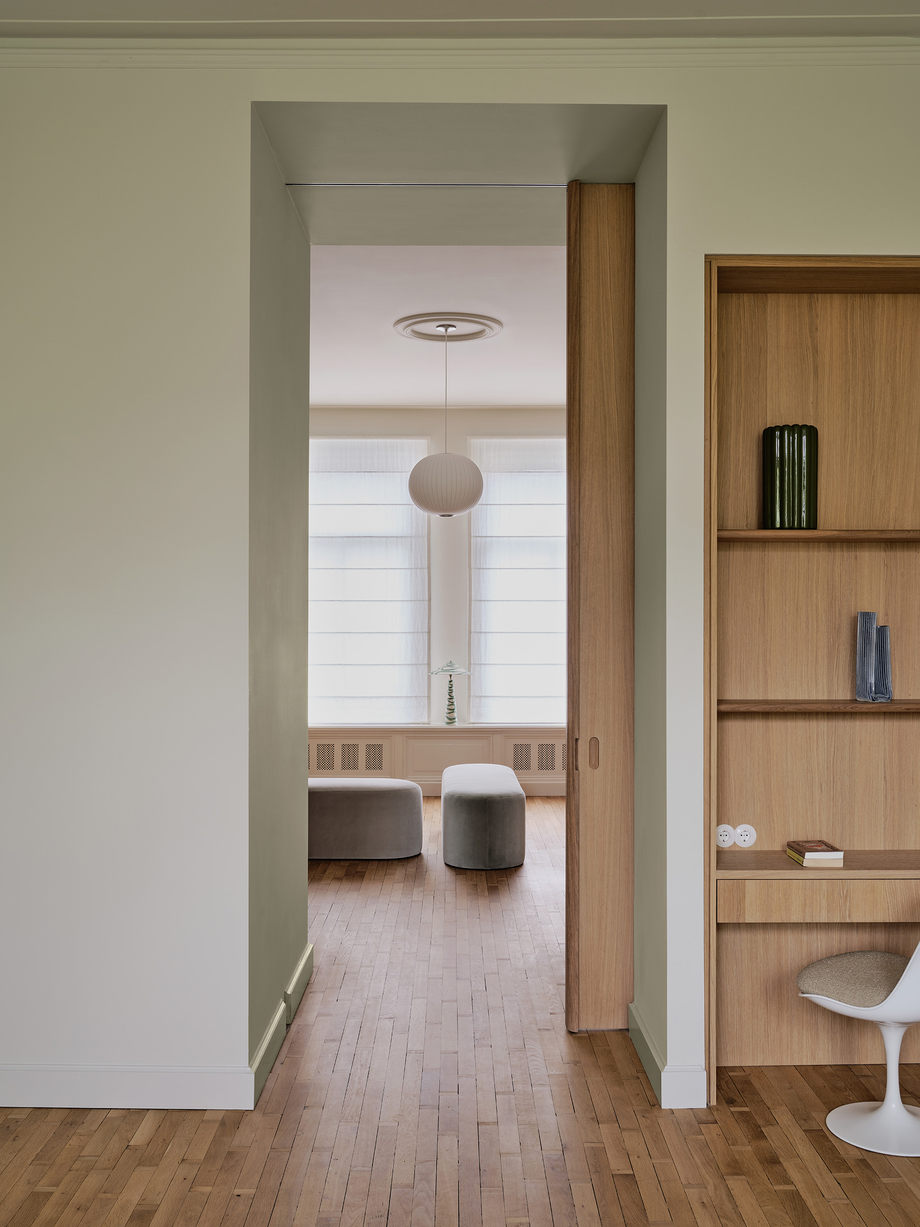 Zachte tinten, vrije vormen en een kleurverhaal dat door alle ruimtes stroomt. Deze serene woning in Amsterdam, vormgegeven door Sascha Faase Interior Design, draait om stille klasse en zorgvuldig maatwerk. Van nachtkastje tot badkamer tot ingebouwd bureau: de toon is gezet. Als de basis klopt, valt alles op zijn plaats. Inclusief het vakwerk.